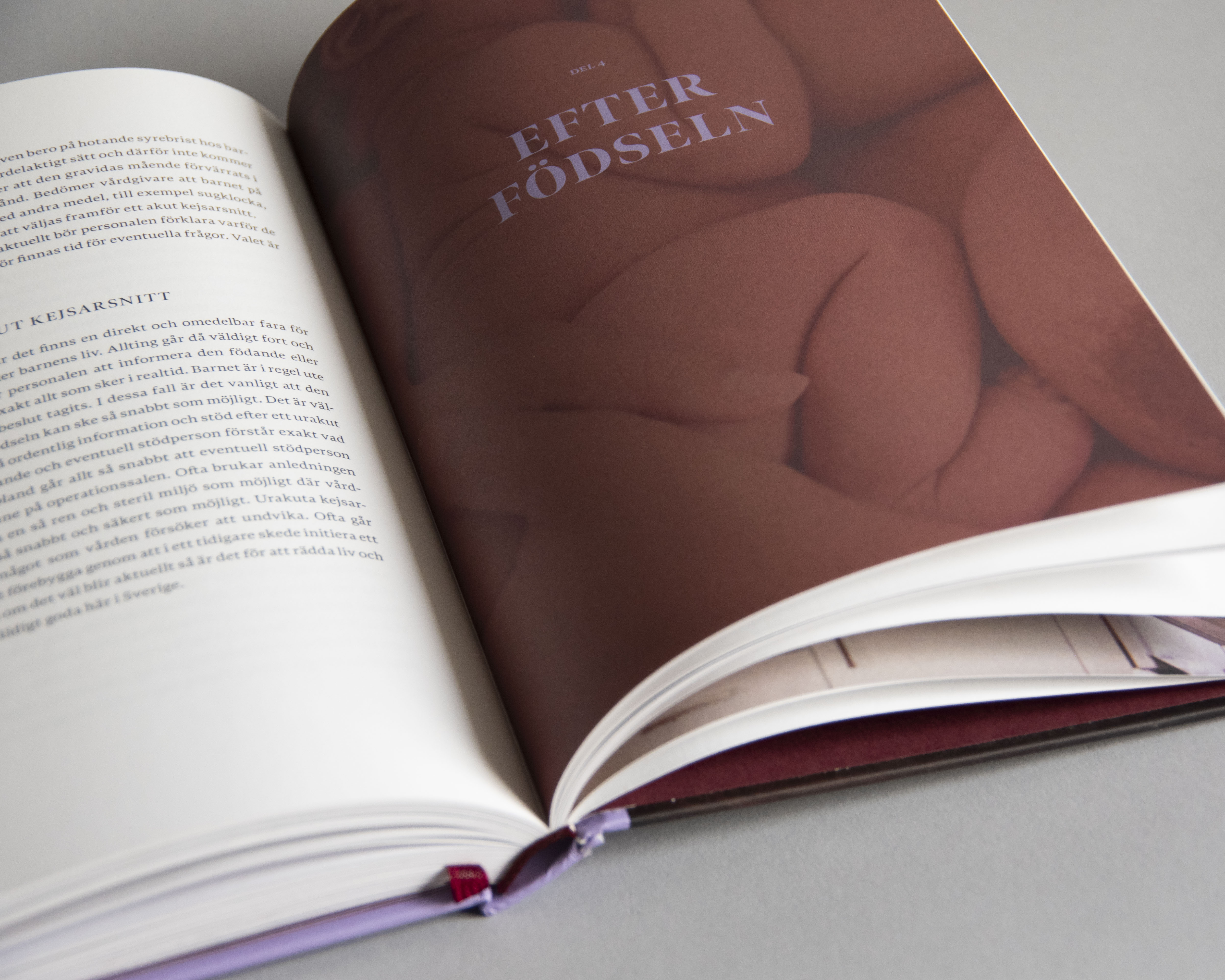 Cover and inlay design of a book about pregnancy and birth. The inlay consists of meny differnt types of text such as recepies, lists, training exhersies etc wich needed a complex structure to make the inlay harmonize.