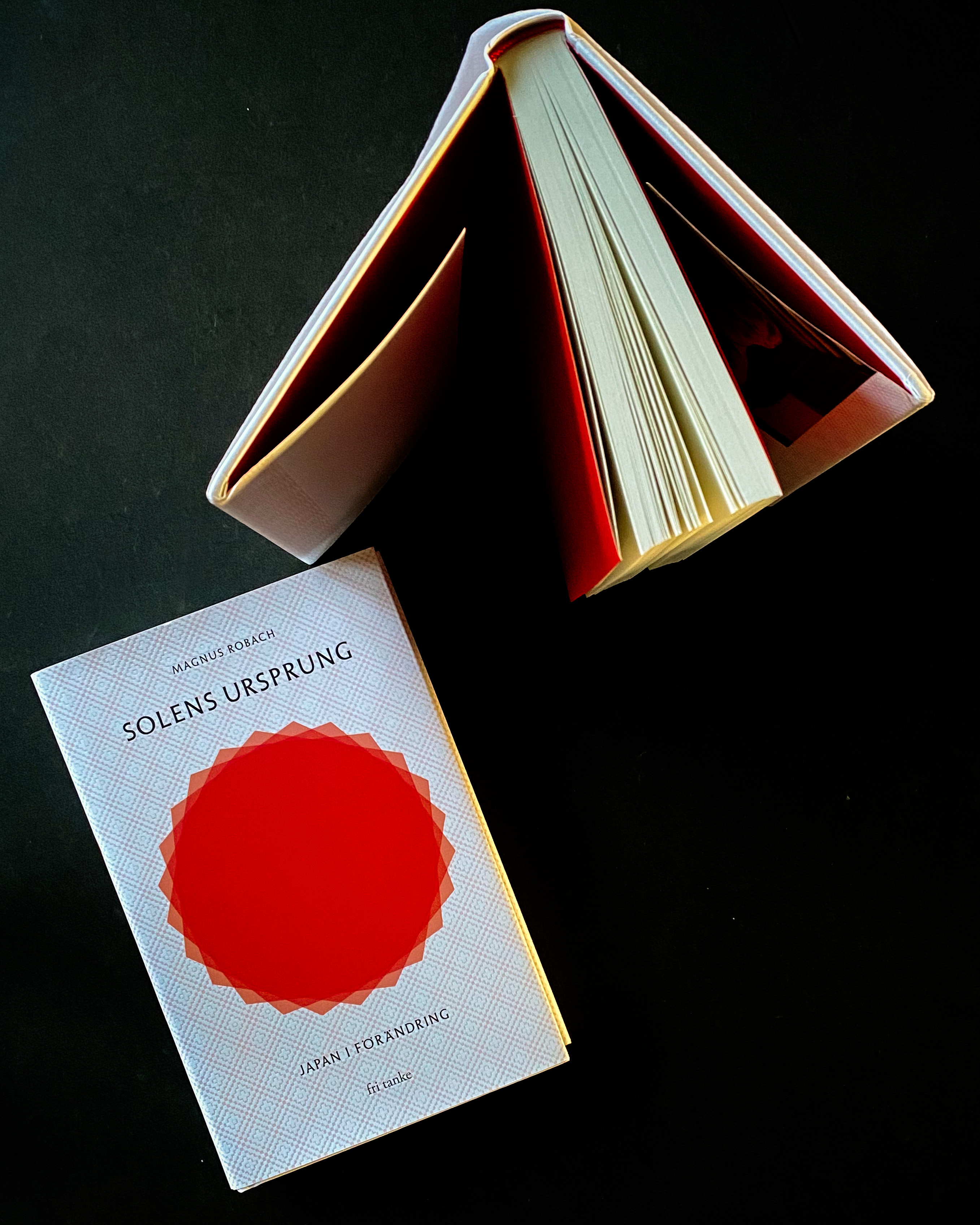 Book cover inspired by the jananese flag and origami-papers with a relief patern covering the whole dust jacket. Published at Fri Tanke 2022.